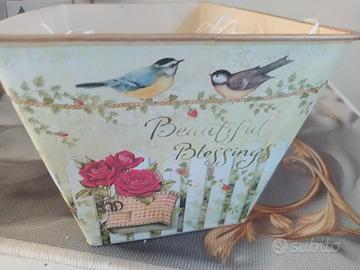 Bellissima latta decorativa dallo stile shabby chic, perfetta per contenere oggetti o come elemento decorativo.