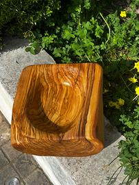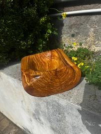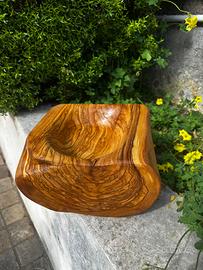 IL CUORE DEL SALENTO NELLA TUA CASA Vendo straordinario centrotavola scultoreo realizzato interamente a mano da un unico blocco di legno di Ulivo Secolare Salentino. Non si tratta di un semplice oggetto d’arredo, ma di un frammento di storia della nostra terra, un pezzo unico che racchiude in sé secoli di sole, vento e tradizione. 100% Legno di Ulivo Salentino (Pezzo unico monoblocco). Trattamento naturale che esalta la lucentezza delle fibre senza alterarne il colore. Questo pezzo è stato ricavato seguendo le forme organiche del tronco originale. La lavorazione artigianale ha richiesto ore di meticolosa levigatura manuale per ottenere una finitura interna lucida che contrasta con la forza del bordo naturale. Le venature tormentate e i toni ambrati sono quelli tipici del vero ulivo stagionato, impossibili da replicare nei prodotti industriali. Come visibile in foto, l'oggetto presenta una piccola fessurazione naturale. Questo dettaglio non è un difetto, ma la "firma" dell'ulivo secolare: testimonia la stagionatura del legno massiccio e ne garantisce l’assoluta autenticità. È il segno di un materiale vivo che continua a respirare, conferendo all'opera un carattere rustico ma estremamente raffinato. Perfetto per chi vuole arredare un ingresso importante, un salotto di design o per chi cerca un regalo di nozze o d'inaugurazione esclusivo. Un investimento nell'artigianato italiano che acquista valore nel tempo.