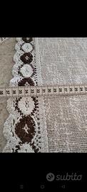 centrotavola di cotone grezzo nei toni del nocciola con bordo all' uncinetto