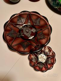 Centrotavola vetro bordeaux decorazioni floreali