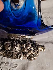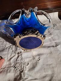 Bellissimo centrotavola/portatovaglioli in vetro di Murano, blu cobalto con base placato argento. In perfette condizioni.