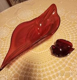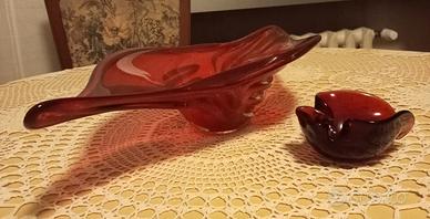 Centrotavola vintage in vetro di Murano rosso anni 70, con posacenere in vetro di Murano rosso.