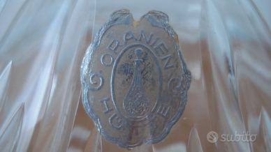 vendo centrotavola in cristallo intagliato con sigillo Oranien, dalla Germania, degli anni '50. Diametro 12 cm, altezza ca.13. Intatto, senza scheggiature o altri danni