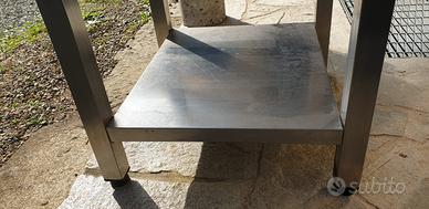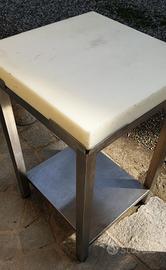 Completamente in acciaio e teflon altezza totale 82 cm. con ripiano sottostante 40x 48. gambe in tubolare 4 x 4 cm. in acciaio, terminato con piedini in gomma antiscivolo....perfetto