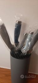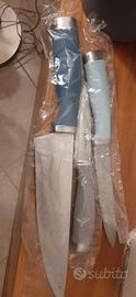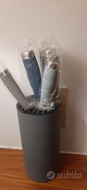 Ceppo di coltelli da cucina nuovo, ogni coltello ancora con pellicola protettiva.