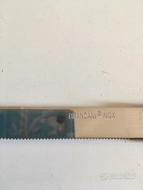 Acquistato, tolte tutte le etichette (compreso il rivestimento adesivo sulle lame inox) e riposto nella credenza.....poi me ne sono dimenticata e non li ho mai usati. Li svendo per far spazio e perché nel fare le foto mi sono accorta di due macchie sul retro del ceppo dove era attaccata una etichetta