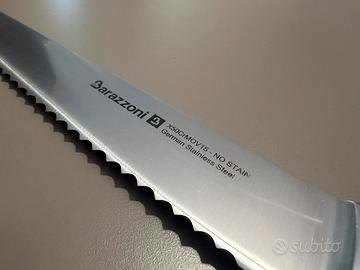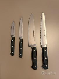 Set di 4 coltelli e ceppo Barazzoni, con piccoli segni di utilizzo come in foto. I coltelli sono ben affilati e usati pochissimo.