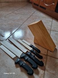 ceppo in legno con 5 coltelli,nuovo mai usato