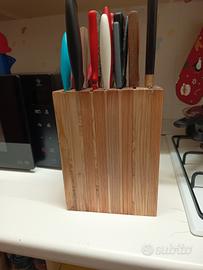 ceppo porta coltelli in pino/abete nuovo ,porta fino a 16 coltelli medi , lungh.22cm,alt.23 cm , larg. 9 cm .realizzato in garage e trattato solo con olio paglierino.