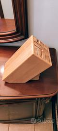 Ceppo porta coltelli Zeller in legno di albero della gomma. Dimensioni 13 x 22 x 25, pesante e molto stabile in ottime condizioni.
