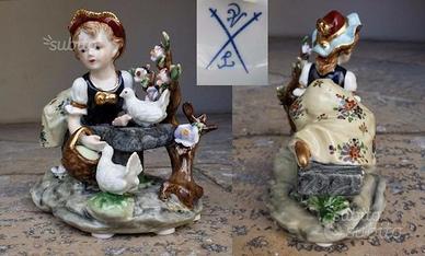 Ceramica degli anni 60' in stile Meissen raffigurante una bambina distesa in un contesto campestre,