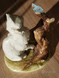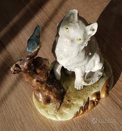Ceramica artistica raffigurante un gatto che punta una farfalla