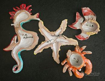 Set Ceramica V.M Vittoria Mazzotti Albisola Marina Cavalluccio Pesce Granchio e Stella Marina Vintage Design