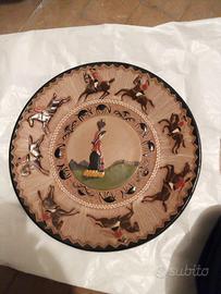 2 PIATTI CERAMICA SARDA DORGALI CONTADINA CON OTRE ACQUA E PASTORE CON GREGGE. 34 CM. DI DIAMETRO E SUL RETRO GANCIO PER ESSERE APPESI