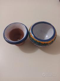 vera ceramica siciliana vaso ceramica con vasetto inserito in coccio diam. 10 cm. come. nuovo