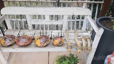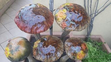 Vendo nr. 5 funghi in ceramica vetrificata della produzione Formano. Oggetti perfetti, colori meravigliosi. I funghi sono composti di 3 parti avvitabili : cappello, gambo e treppiede in metallo. Le misure sono rilevabili in foto, per chi fosse interessato posso mandare tutti i dettagli . Per condivisione : giardino, piante, casa, porcellana, gres, ceramica, oggettistica, thun.