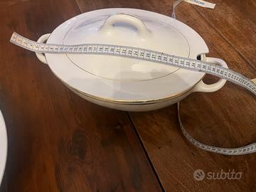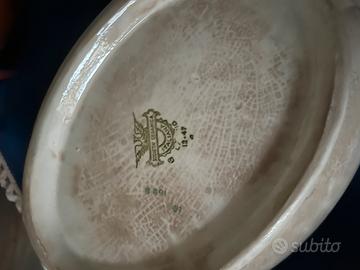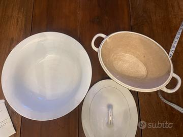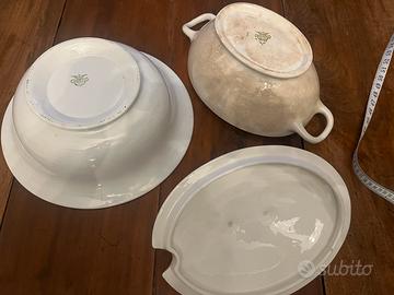 Ceramiche Laveno prima meta 900. Zuppiera con coperchio e grande insalatiera ( diametro cm 36). Entrambi i pezzi sono in ottime condizioni senza sbeccature. La base della zuppiera presenta in bellissimo effetto craqueler probabilmente dovuto al calore. Vendo entrambi per inutilizzo a 30 euro totale. NON SPEDISCO.