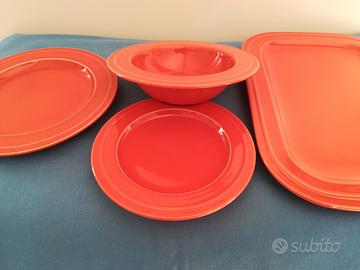 Disegnato da Ambrogio e prodotto da Ceramiche Franco Pozzi negli anno '70 originale servizio di piatti modello TR13 in ceramica colore Salmone composto da :