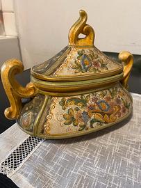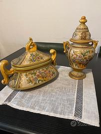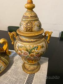 COPPIA DI VASI CERAMICA GIALLETTI DERUTA V.G. DECORATI A MANO, PARTI ORO-FIORI ENTRAMBI PER € 160