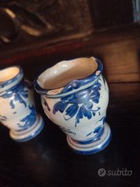 Due piccolissimi vasetti porta viole (h. 5 cm) della manifattura italiana di Albisola del ceramista Mazzotti Giuseppe "M. G. A." che chiuse i battenti per fallimento nel 1939. Le condizioni sono commisurate dal tempo e dall'uso, si notano delle sbeccature come da foto in terza pagina ed il prezzo chiesto s'intende già compreso della spedizione che sarà postale assicurata con tracciabilità