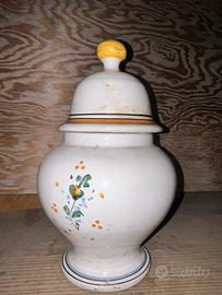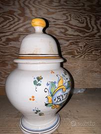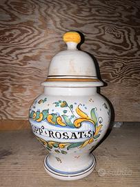orciolo da farmacia siciliana, realizzato a mano con smalto lucido e decori blu intenso.