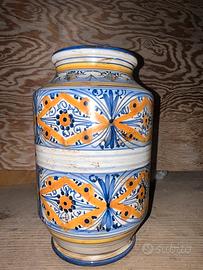 Realizzato a mano nei laboratori tradizionali siciliani, questo orciolo conserva il fascino delle antiche botteghe farmaceutiche.