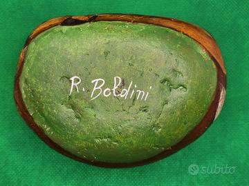 Sasso di fiume dipinto a mano a pannello con colori acrilici, protetto con vernice trasparente. Firma dell'autore sul fondo. Il sasso pesa 800 grammi