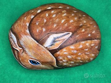 Cerbiatto sasso dipinto a mano