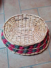 CESTA DI LEGNO CON MANICI - colore neutro con intreccio verde - rosso - buone condizioni