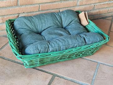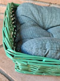 cesta in vimini per cane piccola taglia, gatto... colore e finitura ad acqua. cuscini nuovi. 30 euro la bianca 30 euro la grigia 25 euro la verde
