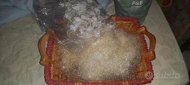 cesta in paglia per confezione natalizia completa con paglia sintetica e foglio trasparente per confezione dimensioni 55x43x19 bordo rosso e manici in legno ottime. condizioni