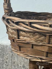 Cesta in vimini intrecciato a mano, forma ovale con manico ad arco. Dimensioni: 40 × 30 cm (altezza cesta 12 cm, manico 20 cm, altezza totale 32 cm).