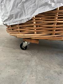 Vendo cesta grande di vimini con ruote, utilizzabile come fioriera o come culla (già imbottita e rivestita in cotone). 50 euro Ritiro a Modena o Riccò