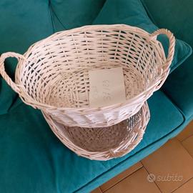 vendo per inutilizzo 4 cesti di vimini bianco ,2 confezioni manici,2 senza le misure le vedete in foto.