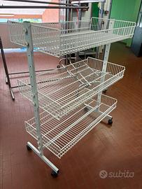 Vendo 20 ceste in netallo rivetito colore buanco con rotelle , tutte con tre scomparti regollabili , causa chiusura negozio . Le vendo sia separatamente che singolarmente. Per l acquisto in blocco e ritoro in loco faccio ulteriore sconto