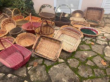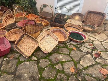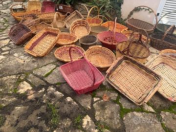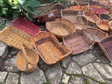Vendo 35 ceste in vimini intrecciato, realizzate artigianalmente, ideali per regalo/uso domestico. Disponibili varie misure. Ottime condizioni. Disponibili singolarmente o a stock