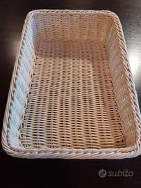 Ceste in polietilene per alimenti lavabili in lavastoviglie e con rinforzo in acciaio Dimensioni: 45×30cm altezza 1 : 6 cm altezza 2 : 11 cm Disponibilità: num 20 ceste Prezzo: 5 euro l'una