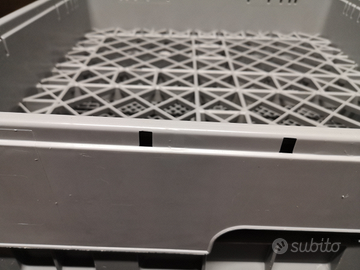 Cestelli per lavastoviglie professionale., con fondo prestampato. Permette la massima efficacia di lavaggio tazzine, piatti, bicchieri, calice. Materiale polipropilene. Misure cm 50 per 50 h10. Quantità 14.Ilprezzo di cadauno.