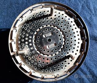 1) CESTELLO INOX per COTTURA a VAPORE, pieghevole, espandibile fino a un diametro massimo di cm. 23,5 abbinato a 2) SOTTOPENTOLA/POGGIAMESTOLO/TAGLIERE decorativo, in CERAMICA smaltata bianca, marchiato “Ceramiche P. Munari, Bassano del Grappa, made in Italy”. Di forma rotonda, con un manico corto e forato per appenderlo, presenta applicazioni in rilievo con un motivo di verdure (carota e pomodoro) e foglie verdi. Ideale sia come tagliere o sotto pentola, sia come elemento decorativo da appendere. Il cestello inox è usato ma perfettamente funzionante, compresi i tre piedini e l'impugnatura; il piatto è come nuovo, mai stato usato, né appeso al muro. Diametro del piatto cm. 20,5 ; lunghezza massima, al manico: 25,5 Diametro cestello inox: chiuso 13,8; aperto 23,5 . Spedizione rapida e sicura tramite Subito, in un punto di ritiro InPost a 3,85. Oppure ritiro in loco a TORINO Porta Susa e, occasionalmente, anche ad ASTI e su tutto il percorso Torino-Asti lungo la S.S. 10.