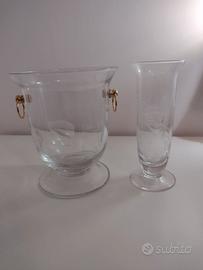 Set di cestello portaghiaccio e n. 6 bicchieri da cocktail in vetro con lavorazione mai usati - ottimo regalo di Natale