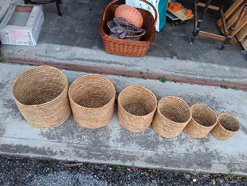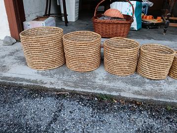 Sei cesti cilindrici a misure a scalare da utilizzare come porta piante oppure quello che si vuole molto originali di bell effetto.