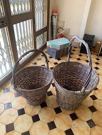 Vendo numero 2 cesti in vinile colore argento/viola: 54cm altezza + 70cm diametro + altezza manico completo 100cm 45cm altezza + 60cm diametro + altezza manico completo 94cm Prezzo tutti e 2 i pezzi.