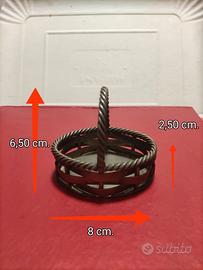 Vendo elegante coppia di cestini decorativi realizzati in lega metallica, caratterizzati da una lavorazione intrecciata raffinata e robusta. Perfetti per chi ama i dettagli ricercati e lo stile Shabby Chic o Industrial.