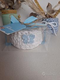 Cestini in fettuccia realizzati a mano. Colori e misure personalizzabili. Adatti come articoli da regalo o come bomboniere. 1 cestino 5 E. Sconto su 4 cestini 18 E anziché 20.