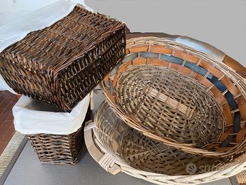 4 CESTINI per confezionare regali pasquali, diverse misure, 2 ovali e 2 rettangolari, totale 10 euro, paglia in regalo, consegna a mano.