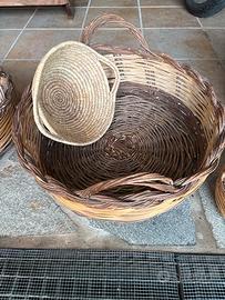 Cestini tradizionali sardi, mai usati e inutilizzati, 4 cesti diametro cm 55 h cm 17; diametro cm 38 h cm 15 ; diametro cm 43 h cm 32 ; diametro cm 40 h cm 30. Il piccolino diametro cm 24 h cm 10. Il cestino con i manici in paglia diametro cm 28 h cm 13.