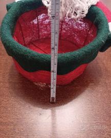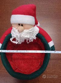 Piccolo cestino con forma di Babbo Natale Misure: diametro 14 cm, altezza 7 cm circa. Ideale per caramelle o porta oggetti.