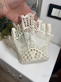 cesto decorativo realizzato all'uncinetto, perfetto per aggiungere un tocco di stile alla tua casa.
