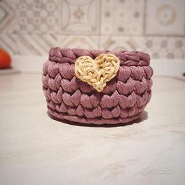 cestino fatto a mano in fettuccia, utile come svuotatasche o porta oggetti vario adattabile in ogni ambiente