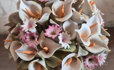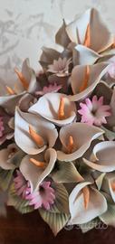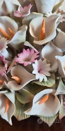 Vaso di Fiori (Calle) cm. 18 x cm. 18 circa in porcellana prodotto da C.& G. Mollica Certificato di origine, Made in ItayI Fabbricato e dipinto interamente a mano da esperti altamente qualificati, secondo i dettami della Scuola Capodimonte del 1842 Esemplare raro in perfetto stato